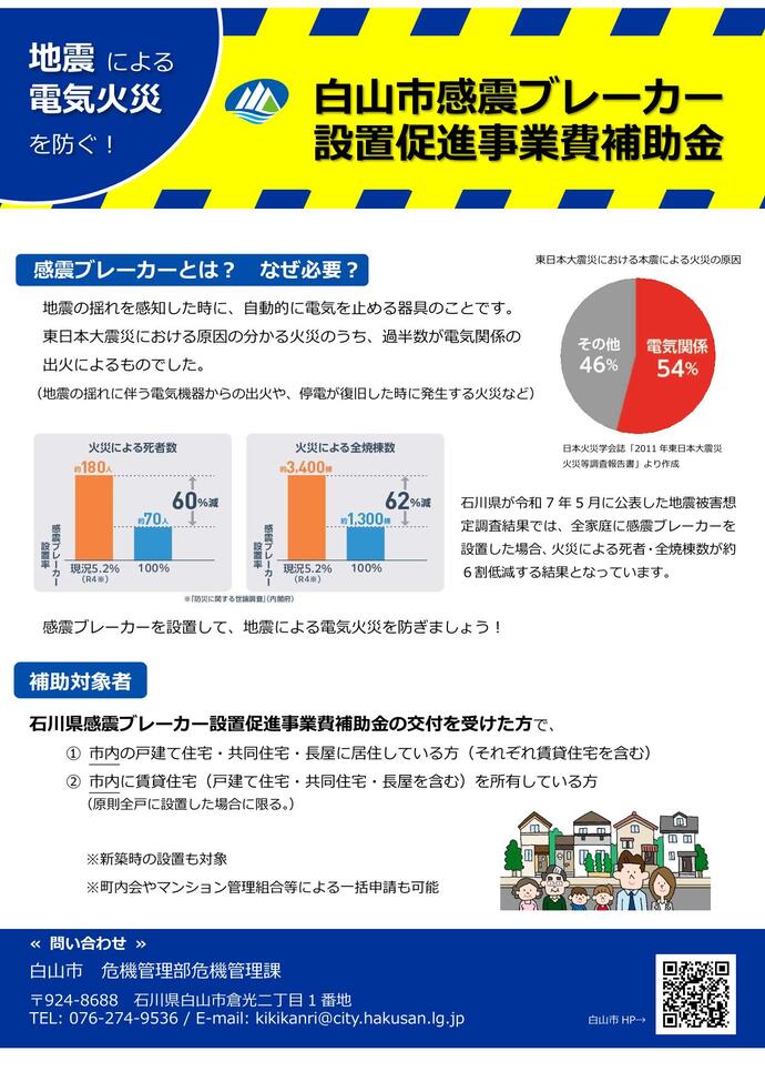 石川県感震ブレーカー設置促進事業費補助金の交付を受けた方で、